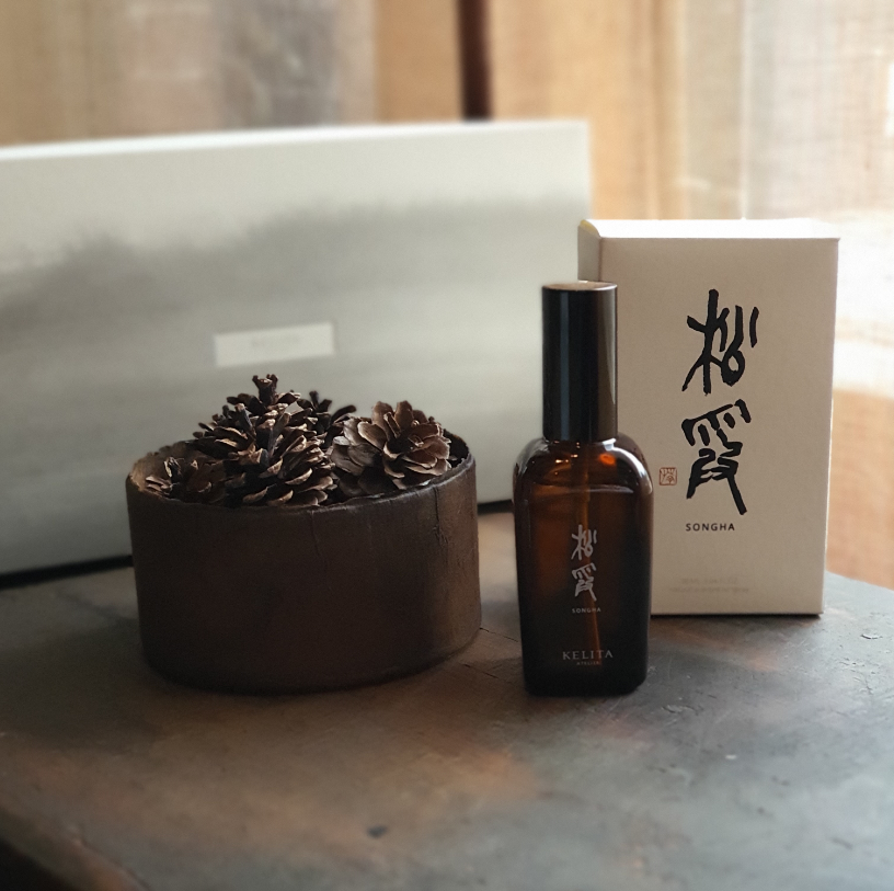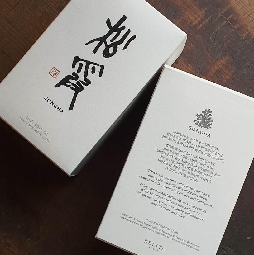 SONGHA, a natural-scented oil for your space, evokes the tranquility of a misty pine forest through the clear scent of a pine tree and Chinese ink. Calligrapher CHANG RYUN GWON’s unique work,