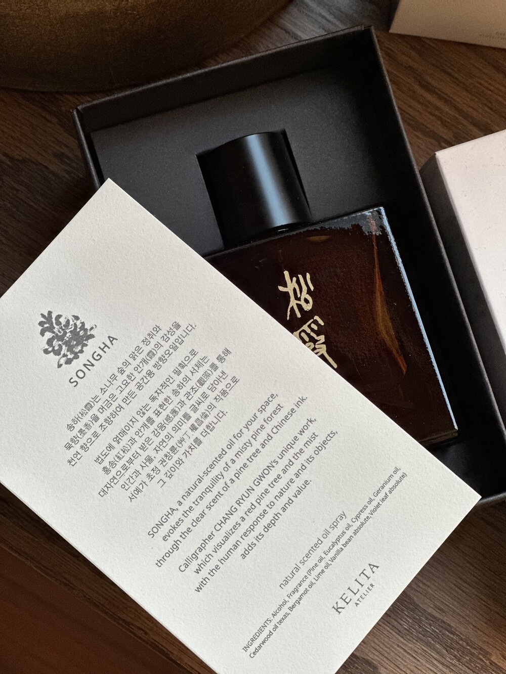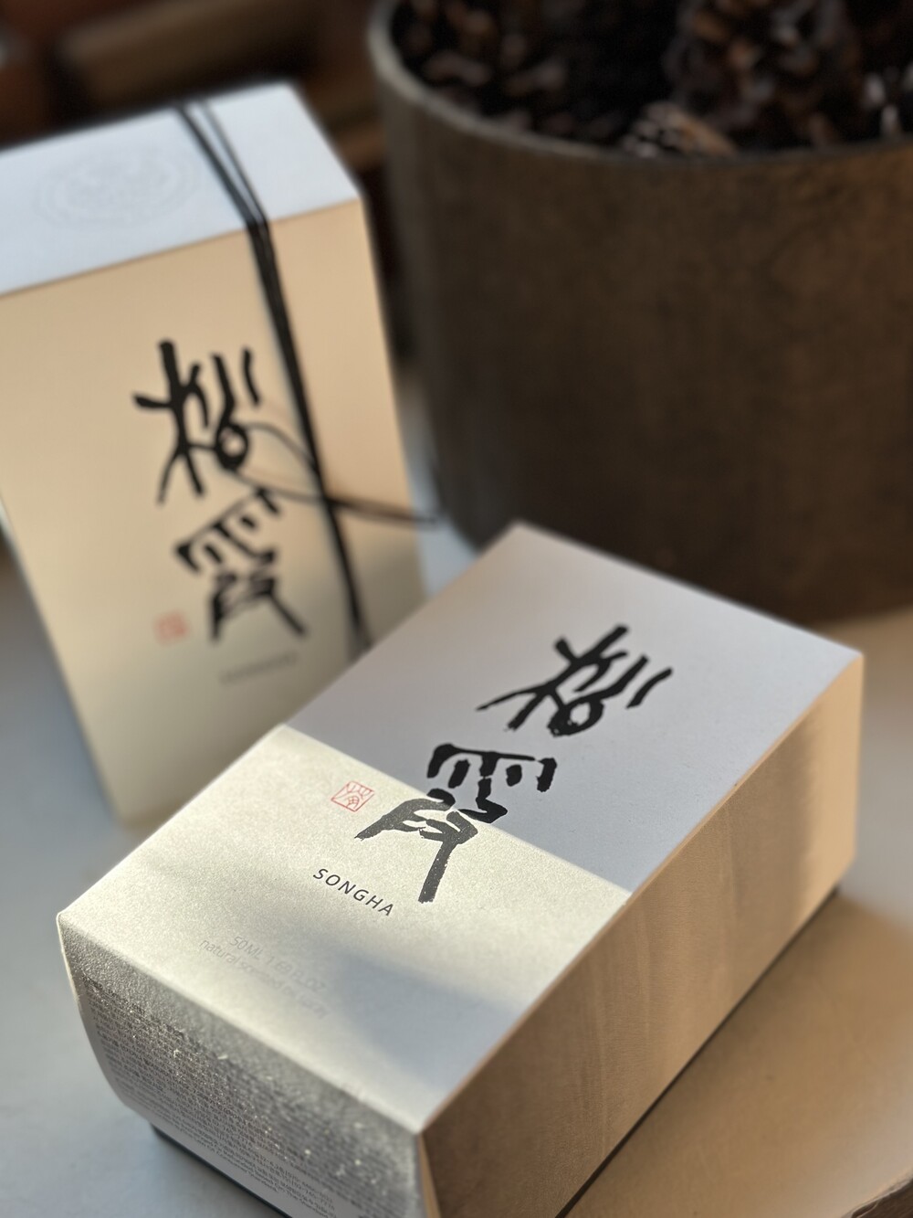 송하(松霞)는 소나무 숲의 맑은 정취와 묵향(墨香)을 머금은 고요한 안개의 감성을 천연향으로 조향하여 만든 공간용 방향 오일입니다.법도에 얽매이지 않는 독자적인 필획(筆劃)으로 홍송(紅松)과 안개(霞)를 표현한 송하(松霞)의 서체는 대자연으로부터 받은 감응(感應)과 관조(觀照)를 통해 인간과 사물, 자연의 의미를 글씨로 담아낸 서예가 초정 권창륜(艸丁 權昌倫)의 작품으로 그 깊이와 가치를 더합니다.