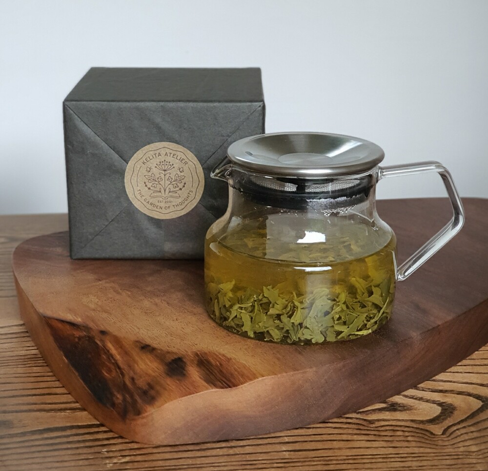 매쉬 스트레이너가 뚜껑과 일체형으로 되어 있는 유리주전자는 미세한 찻잎을 간편하게 거를 수 있고 내열유리로 만들어져 따뜻한 차와 아이스티에 모두 사용하실 수 있습니다.
