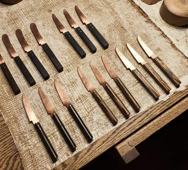따듯하고 무른 성질의 동으로 만든 버터나이프는 고급스러운 흑단과 아름다운 결을 지닌 지르코테 나무를 섬세하게 조합하여 다양한 형태로 표현한 김현성 작가의 핸드메이드 작품으로 멋스럽고 여유로운 일상을 위한